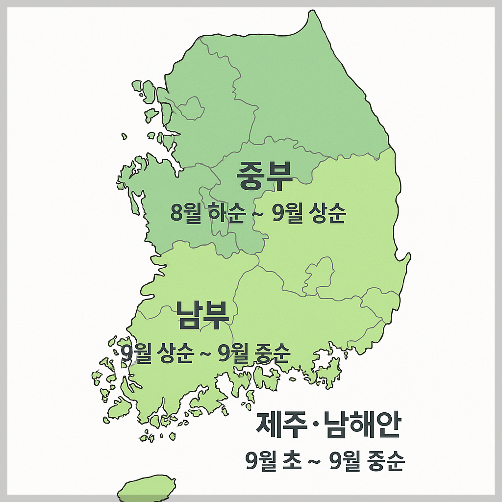 - 남부지방 (전라, 경상, 제주 등): 9월 상순 ~ 9월 중순