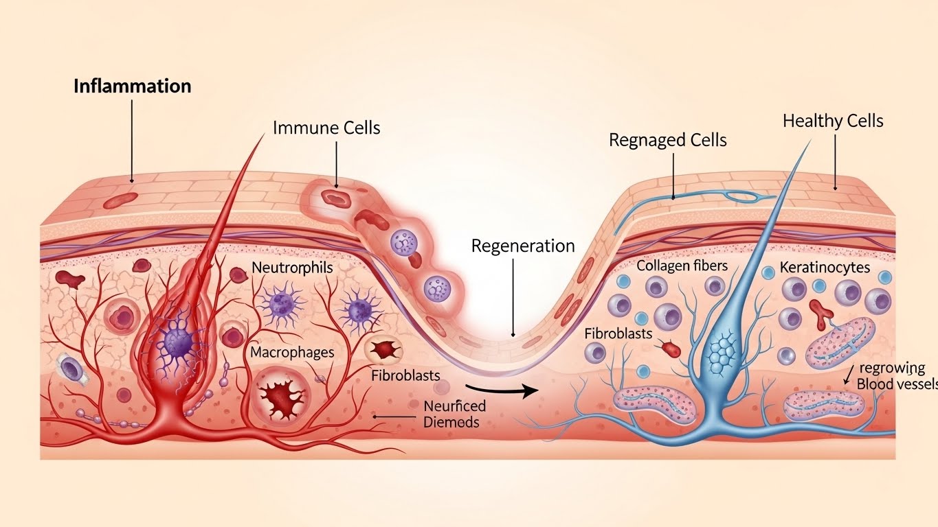 이런 자극들이 누적되면 몸속 면역계는 ‘항상 위기상태’로 반응하며, 이로 인해 세포 재생이 느려지고, 피부는 칙칙해지고, 장기는 노화되기 시작합니다.