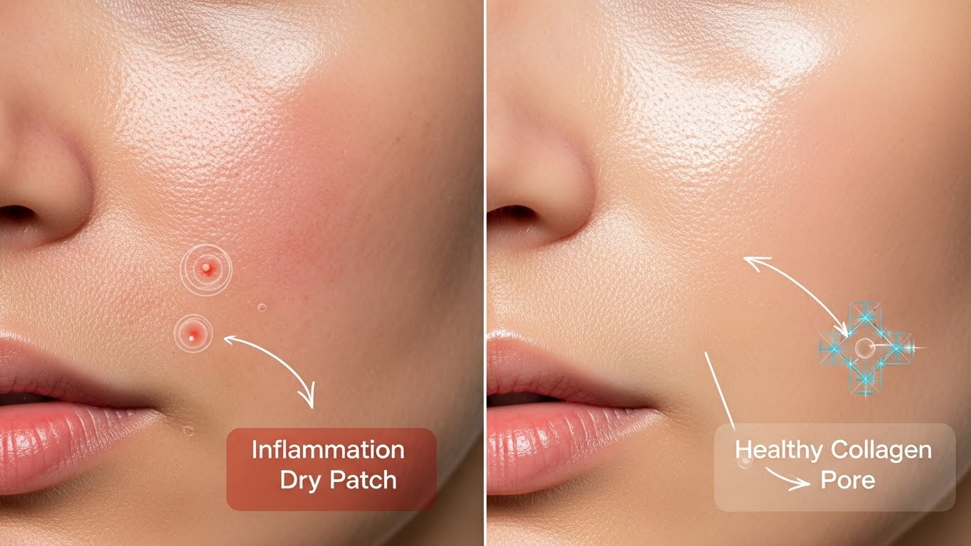 - ✔ 피부: 염증 억제 시 트러블, 붉음증, 진피 손상 감소