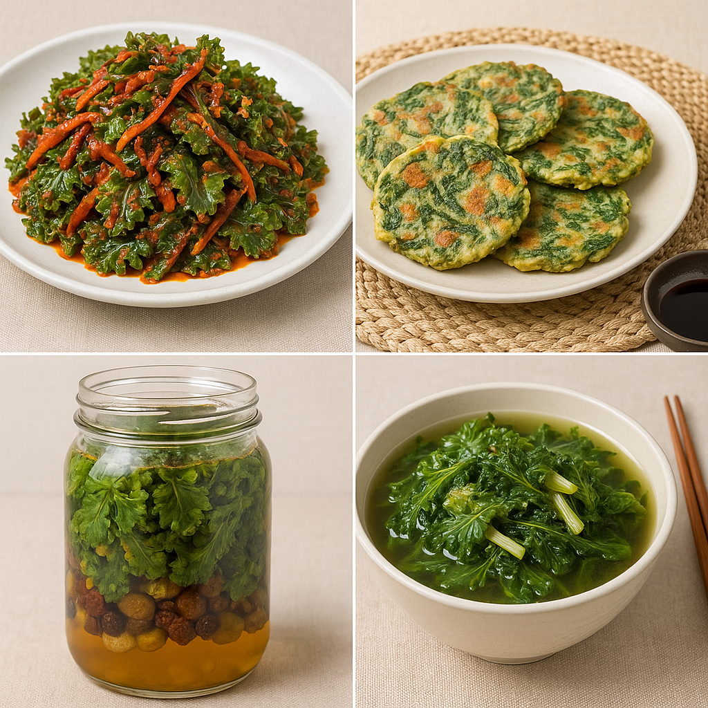- 겉절이: 배추 대신 곰보배추로 겉절이를 담가보세요. 매콤달콤한 양념과 어우러져 밥반찬으로 최고입니다.