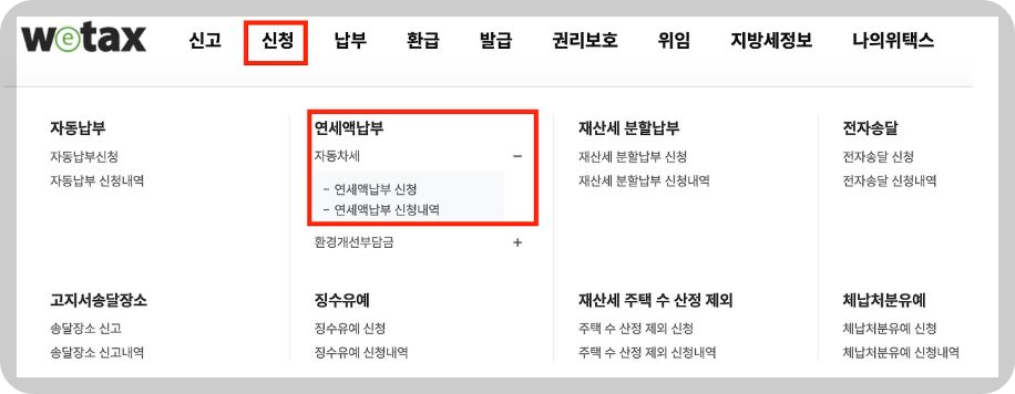 - 연납 신청은 매년 새롭게 해야 하며 자동 갱신되지 않습니다.